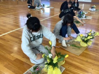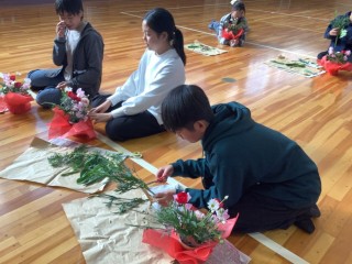 昨日、6年生がフラワーアレンジに挑戦しました。一花一花に、これまでお世話になった方々への感謝の気持ちを込めてアレンジしていきました。出来上がったアレンジフラワーは、明日の式場を彩っています。