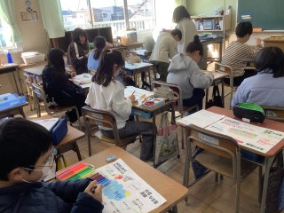 ハピネスマップ 公開日 2026/03/18 更新日 2026/03/18 甚小日記 5年生がハッピートークトレーニングのまとめとしてハピネスマップを作りました。前向きな言葉がたくさん集まったシートは、見ているだけで心が温かくなります。明るく楽しいイメージになるようにとカラフルに仕上げていました。目にする場所に貼って、さらに「前向き脳」になるといいなあと思います。 +3