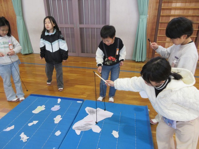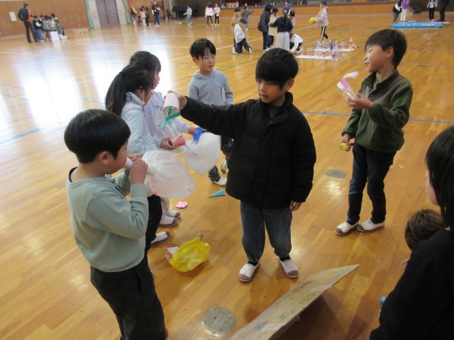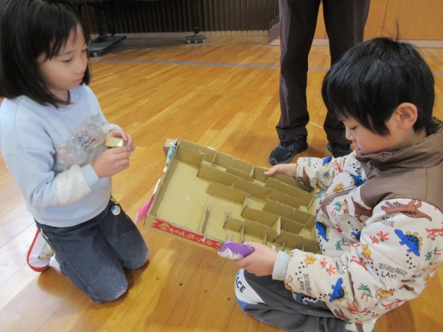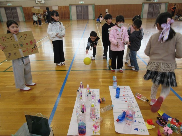 2年生が1年生を招待して、おもちゃランドを開きました。