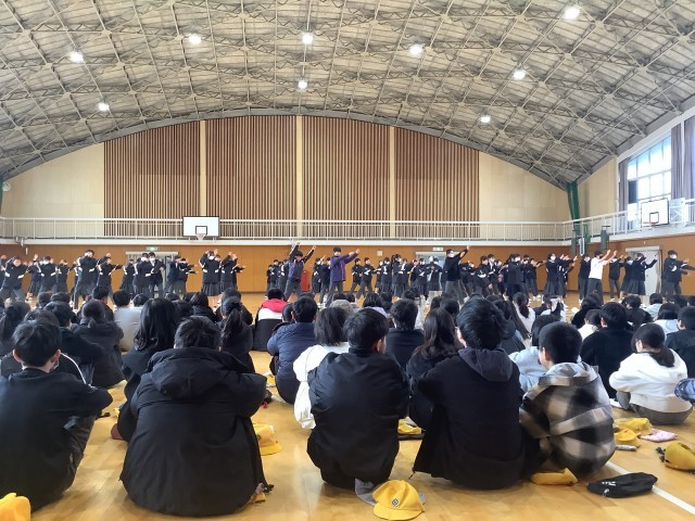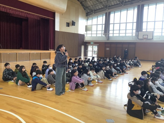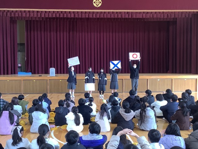 七宝中学校の1年生が、中学校生活についてクイズを交えて紹介してくれました。