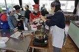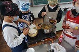 5年生が家庭科の授業で調理実習を行いました。今回は、煮干からだしをとった味噌汁づくりに挑戦しました。だしをとることで、素材のうま味や香りを感じることができました。自分たちでとっただしの味に、子どもたちは「いつもの味噌汁よりおいしい!」と笑顔を見せていました。また、透明な鍋を使ってご飯を炊く体験も行い、米が水を吸ってふっくらと炊き上がっていく様子を観察しました。目で見て、香りで感じて、味わうことで、食の大切さを実感する学習となりました。