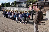 3年生が、総合的な学習の時間の学習の一環として、学区内にある「おまつの里」を見学しました。瑞圓寺にて保存会の方や住職さんからお話を聞き、公民館にてスライドで説明をしていただきました。児童はお話にしっかりと耳を傾け、クイズにも正解することができました。「今まで知らなかったけど、お話を聞いてお松のことが少しわかりました」と校区に有名なところがあることに驚き、興味をもつことができました。