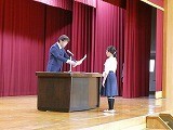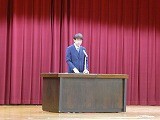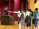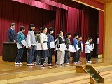 朝礼の中で、「ありがとうを贈ろう」キャンペーンと「書写作品コンクール」の入賞者の表彰を行いました。