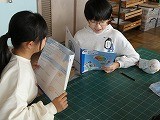 3年生は、緊急地震速報を受けたときの身の安全確保を学んだ後、ごみ袋でカッパを作ったり、新聞紙で紙スリッパを作ったりしました。身近なものでも工夫次第で防災に役立つことを体験を通して学びました。
