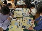 5年生は、あま市の今と昔の防災の取り組みについての話を聞いた後、避難所運営ゲーム(HUG)に挑戦しました。限られた条件の中で安全に避難所を運営する難しさを実感しました。また、サランラップを使った応急措置や、毛布を使った簡易担架づくり、キッチンマットで人や物を運ぶ実演も見せていただき、災害時に役立つ多くの知識と技を学びました。
