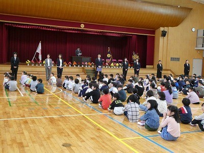 始業式では、校長先生から担任発表があり、「あいさつ」「チャレンジすること」「友達を大切にすること」についてのお話がありました。本年度も本校の学校教育にご支援・ご協力をよろしくお願いします。