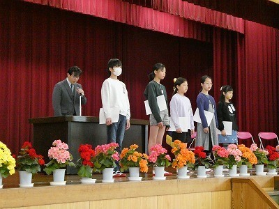 始業式の後に前期児童会役員の認証式を行いました。学校のリーダーとして、今後の活躍を期待しています。