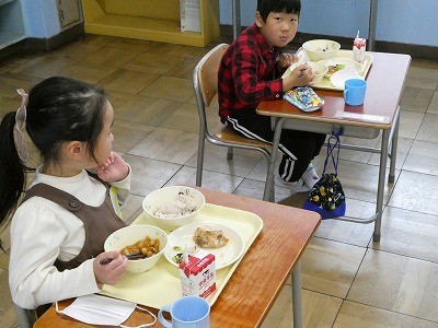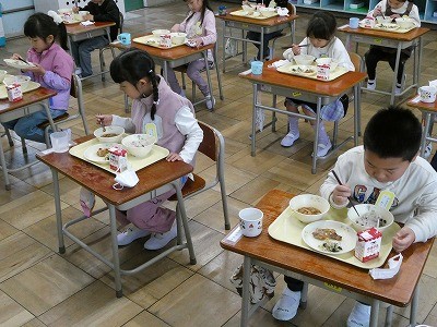 新しい学年になって初めての給食に、子どもたちもうれしそうな表情を見せていました。せきはんはお祝いの気持ちを感じられる献立で、学期のよいスタートにぴったりでした。教室では、和やかな雰囲気の中で給食の時間を過ごしました。これからも、給食を通して食の大切さや楽しさを感じながら、元気に学校生活を送ってほしいと思います。