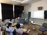 さくら学級の児童が、七宝地区の小中学校(七宝小・秋竹小・伊福小・宝小・七宝中・七宝北中)の特別支援学級の児童・生徒と給食の時間にオンラインでなかよし交流会を行いました。「宝小学校さ~ん」という呼びかけに「はあ~い!」と元気よく手を振りながら答えました。ホワイトボードを使った「これなんだ」ゲームでは、準備をしていた絵を見せてクイズを出したり、4人で声を合わせて答えたりし、他校の仲間との交流を楽しみました。