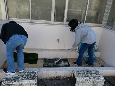 6年生が、卒業を前にした奉仕活動として、学校の環境をよりよくするための清掃活動に取り組みました。体育館では、倉庫の整頓やトイレの清掃、トイレマットの清掃を行い、普段多くの人が利用する場所を丁寧にきれいにしました。家庭科室では、ガスコンロの周りや作業台、流しを磨き上げ、気持ちよく使えるように心を込めて掃除をしました。また、図工室前の手洗い場もきれいに整え、学校全体がより快適な環境になるよう力を合わせて取り組みました。6年間お世話になった学校への感謝の気持ちを込めて、一生懸命に作業する姿がとても印象的でした。6年生の思いがこもったこの活動によって、学校がさらに気持ちよく過ごせる場所になりました。