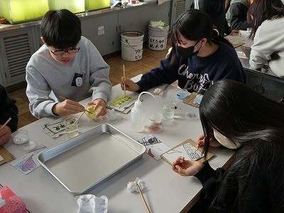 6年生が卒業を前に、恒例となっている七宝焼の制作を行いました。一枚の大きな下絵を20のパーツに分け、思いを込めて釉薬をのせていく共同制作です。6年間の学校生活を振り返りながら、色づかいや表現方法に工夫を凝らす姿が見られました。七宝焼には3年生の頃から触れてきており、その経験が今回の制作にも生かされました。手直しや色調整を重ねながら、6年生らしい落ち着いた仕上げとなりました。完成した作品は、七宝焼アートヴィレッジで10日ほど展示され、卒業式の会場でも披露される予定です。子どもたちの思いが詰まった力作をぜひご覧ください。