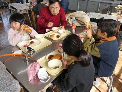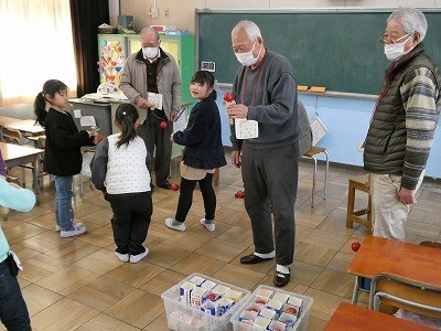 「地域の方とふれあう会」を行い、地域の皆様にご参加いただきました。生活科の学習として、けん玉やお手玉、あやとりなどの昔遊びを教えていただきました。初めて挑戦する遊びも多く、思うようにできず悔しそうにする場面もありましたが、地域の皆様がそばで優しく声をかけていただき、子どもたちは笑顔で何度も挑戦していました。また、1・2年生が今月の歌「ふるさと」を心を込めて歌いました。少し緊張しながらも、一生懸命に歌う子どもたちの姿にやさしく澄んだ歌声が響き渡りました。歌い終わると地域の皆様から温かい拍手と笑顔が送られ、子どもたちはうれしそうな表情を見せていました。最後は地域の皆様と一緒に給食を食べ、会話を楽しみながら和やかな時間を過ごしました。昔の遊びや学校の話を聞く中で、世代を超えた温かな交流の輪が広がりました。