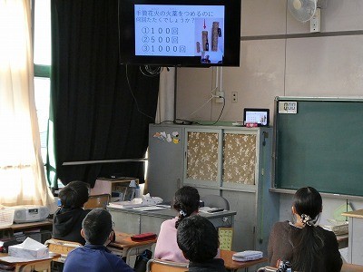 5・6年生が朝の時間に、今年度最後のハッピートーク朝礼を行いました。今回は、美和花火会の皆様をゲストにお迎えし、オンラインで対話をしながらの朝礼となりました。花火会の方から、手筒花火の活動内容や制作の工程についてお話を伺いました。手筒花火は一本一本ご自身で作られており、火薬を丁寧に詰めた後、しっかりと縄を巻いて仕上げていくことなど、普段はなかなか知ることのできない話に、子どもたちは興味津々でした。また、美和花火会はおよそ20年の歴史があり、現在の会長さんは三代目であること、そして「もっと有名になって、将来は大きな花火大会で手筒花火を実演したい」という夢も語ってくださいました。地域の伝統を大切にしながら挑戦を続ける姿に、子どもたちは多くの刺激と学びを得る、心に残る朝礼となりました。