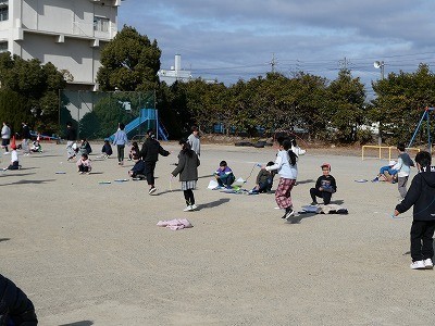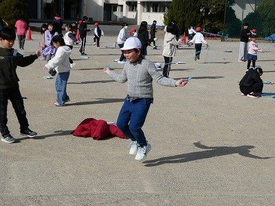 本日のなかよしタイムでは、なわとび練習を行いました。今日も後ろ跳びに取り組んだ後、検定タイムとしてさまざまな跳び方に挑戦しました。2月3日(火)のなわとび大会に向けて、一人ひとりが目標を意識しながら練習に励んでいました。