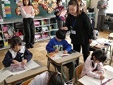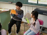 2年生が生活科の学習で作ったおもちゃを使い、1年生を招待して「おもちゃ王国」を開きました。会場には、工夫いっぱいの6つのブースが並び、2年生はそれぞれのおもちゃの遊び方やルールを、分かりやすく丁寧に説明していました。1年生にも安心して遊んでもらえるよう、やさしく声をかけたり、「こうすると上手にできるよ」とアドバイスしたりする姿が多く見られました。1年生は、夢中になっておもちゃで遊びながら、「もう一回やりたい!」「すごいね!」と笑顔いっぱいで楽しんでいました。互いに交流を深め、学年をこえた温かい関わりが見られる、すてきな時間となりました。