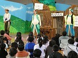 全校児童を対象に劇団うりんこさんによる舞台作品「かえるのそらとぶけんきゅうじょ」**を鑑賞しました。この作品は、「空を飛びたい」という大きな“あこがれ”をかなえるため、カエルたちが何度も研究し、工夫し、挑戦を続ける姿を描いた物語です。どんなにむずかしく思える夢でも、あきらめずに挑み続けることで、新しい発見や発明へとつながっていくことを子どもたちに優しく語りかけてくれました。