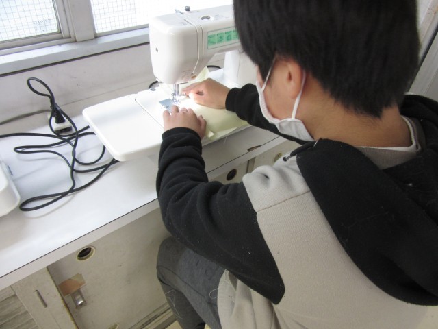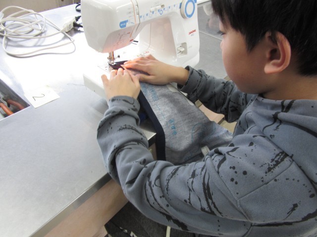 5年生は、家庭科でミシンでエプロンを作っています。