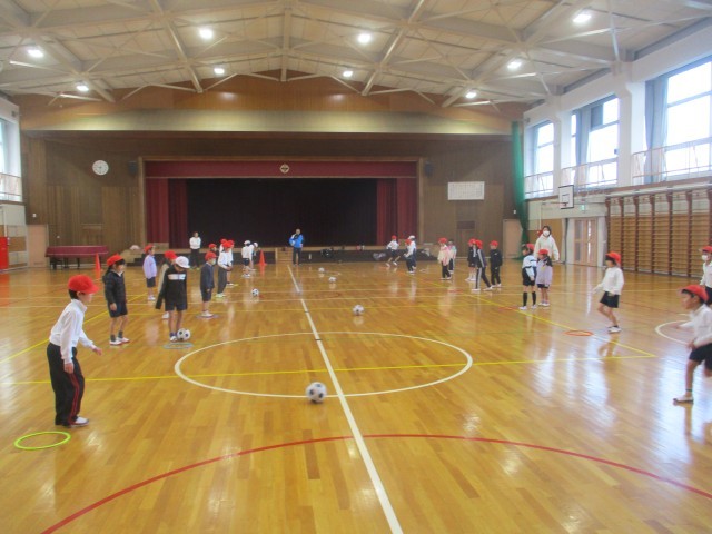 サッカーに取り組んでいました。インサイドキックの練習をしていました。
