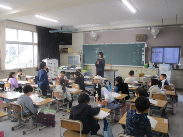 「どうぶつの赤ちゃん」の学習に取り組んでいました。気付きや思いを発表していました。