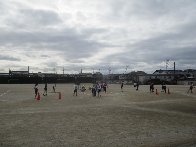 サッカーに取り組んでいました。チームに分かれて、練習したり、試合したりしていました。