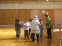 リズムの異なる手拍子を重ね合わせて合奏していました。