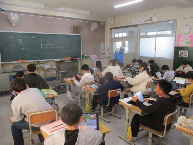 一人一人タブレット端末を使って、身の回りの生き物の一年の様子について調べたり、まとめたりしていました。