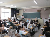 ボールを遠くまで投げる練習に取り組んでいました。体の使い方を意識して、投げていました。