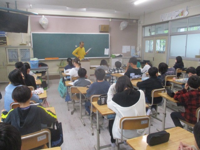 タブレット端末の使い方やきまりについてのお話を聞いていました。