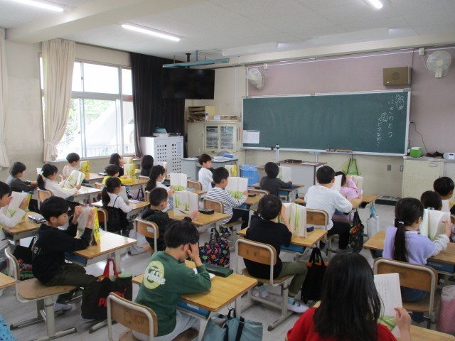 「ふきのとう」の範読を姿勢よく聞いていました。