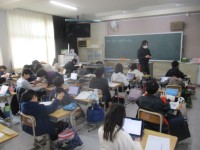 練習用の版画板を使って、彫刻刀の使い方を練習しました。正しい持ち方で、彫ることが...