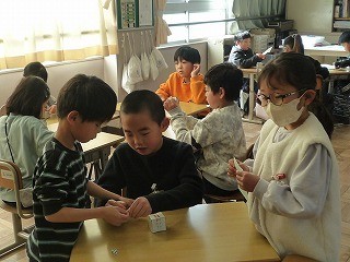 向かい合う面の数字がいくつになるか考えながらつくりました。
