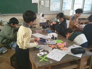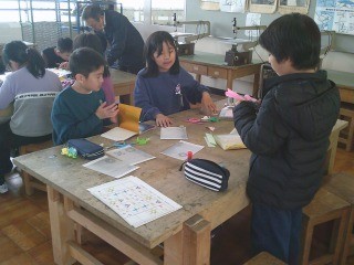 4年2組 図画工作の時間 公開日 2026/02/24 更新日 2026/02/24 学校生活のようす 今日は切り絵に取り組んでいました。折り紙を何回か折り、絵を描いて絵がつながったり、面白い模様ができたりするのを楽しんでいました。 +2