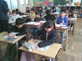 復習のプリントに取り組んでいました。早く終わった子は、読書をしていました。
