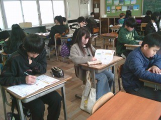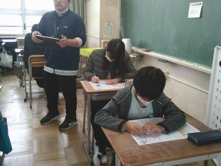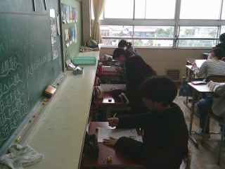 テストに取り組んでいました。聞き取りテストの準備ができ、始まるところでした。以前はラジカセが必要でしたが、タブレットとモニタがあれば、聞き取りテストも簡単にできるようになりました。