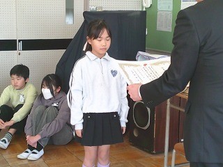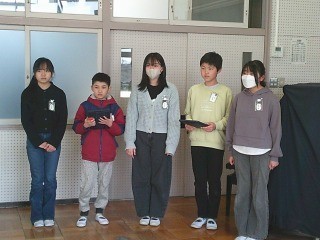 表彰では、人権作品コンクール、赤い羽根コンクール、PTAいじめ防止標語コンテスト、体力賞A・Bのお披露目がありました。たくさんの子が表彰された朝礼となりました。