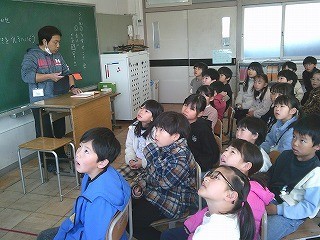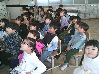 1年2組 読み聞かせ 公開日 2026/03/12 更新日 2026/03/12 学校生活のようす 急遽、担任の先生が読み聞かせを行いました。えほんの挿絵をタブレットのカメラを使って、モニタで紹介しながらの読み聞かせでした。