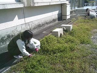 今日の活動は、体育館前の草取りでした。卒業式や入学式の会場の周りをきれいにし、卒業生や新入生の素敵な式をPTA活動でもサポートしています。