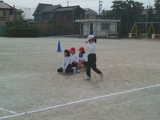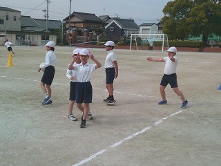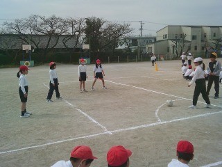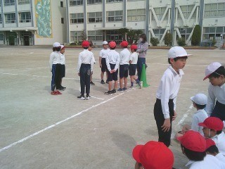 3年生 体育の時間 公開日 2026/03/18 更新日 2026/03/18 学校生活のようす キックベースを行っていました。ボールを守備の子に取られないように蹴り、コーンの周りを走ります。守備は、タッチや送球をするのではなく、ボールを取ったら守備の子は素早くマウンドへ戻ってしゃがみ「アウト―!」と叫びます。楽しんでいました。 +2