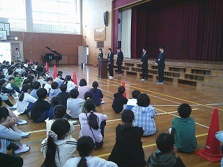 着任式では、新しく来られた先生方一人ひとりから挨拶があり、子どもたちは興味津々な様子で耳を傾けていました。素敵な出会いの場となりました。