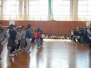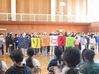 6年生を送る会を行いました。今日のために実行委員を中心にセリフの練習やアーチの準備、各学年ともに出し物の練習に励んできました。学年の出し物では、その学年の良さが感じられるアイデアや工夫あふれる歌やダンス、リコーダー演奏や劇、そして6年生に感謝を伝えるメッセージや呼びかけがありました。最後に、6年生が息びったりのダンスや跳び箱や縄跳びなど技の披露した後、卒業式で歌う合唱曲を歌ってくれました。6年生の卒業を全校で祝い、6年生とともに楽しむ温かい会となりました。