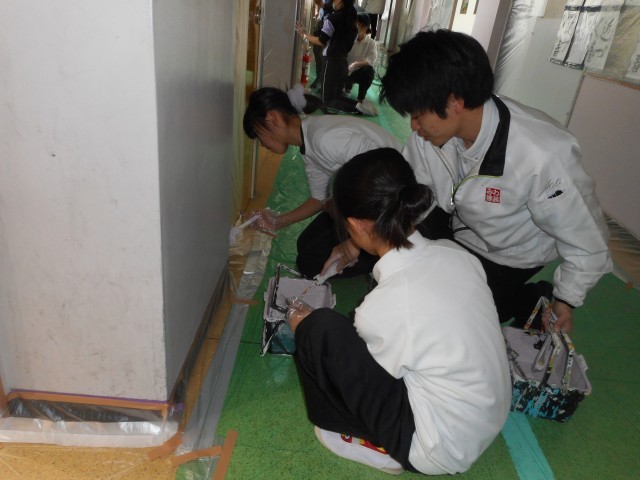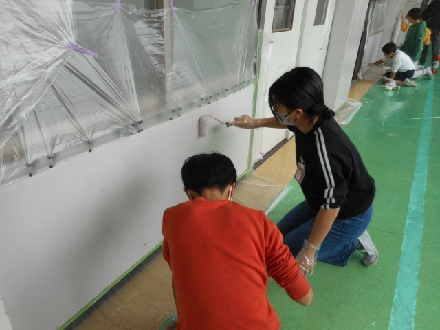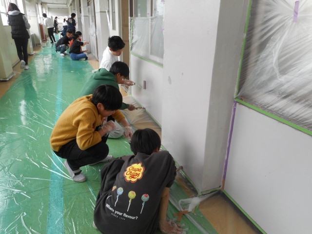 5時間目・6時間目に、6年生が奉仕作業の一環として、西館2階廊下のペンキ塗りをしました。