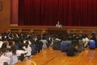 昨日は、朝の読み聞かせがありました。1~3年生は、いつも通り机を寄せて床に座っ...