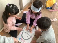 生活科で「福笑い」をしました。できあがった顔を見て、みんなで大笑いをしました。た...