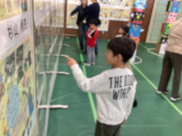 今日、明日と作品展が体育館にて開かれています。児童のみんなも他の人の作品をじっくり見ながら鑑賞していました。