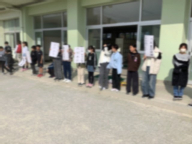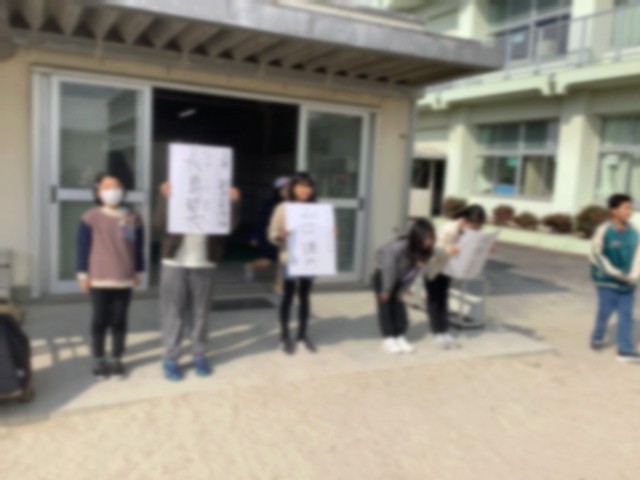 児童会役員選挙に向けて選挙活動を行なっています。休み時間に大きな声で投票を呼びかけていました。