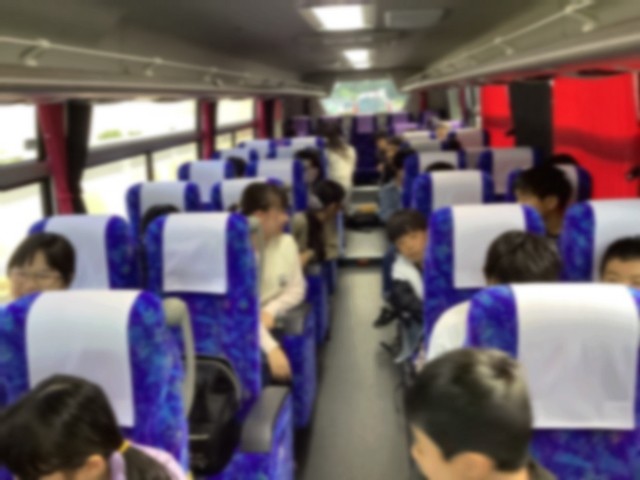 バスの中ではレクをやったり音楽を聴いたりして胸を高鳴らせています。