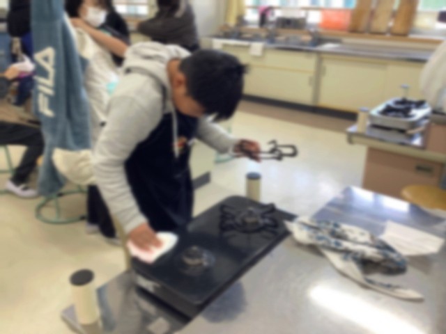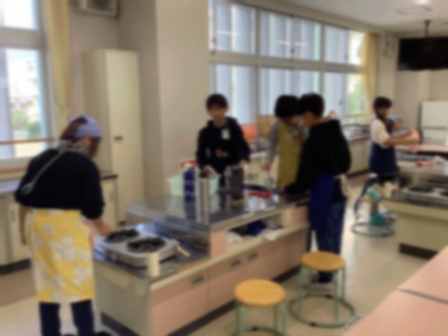 今日の調理実習は「茹でる」と「炒める」の両方を使って、ジャガイモと玉ねぎ、ベーコンを材料にベーコンポテトを作りました。ボランティアのお母さん方に支えていただき、怪我なく手際良く?調理できました。