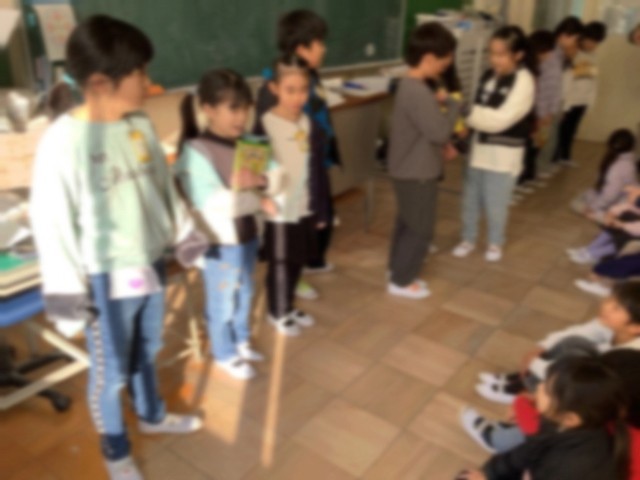 3年生 1年生に本の読み聞かせをしました!! 公開日 2025/12/11 更新日 2025/12/09 学校生活のようす 3年生が国語の学習「おすすめの一さつを決めよう」の学習で1年生に紹介したい本を、班で話し合って決めました。1年生に喜んでもらえるよう読み聞かせの練習もして、今日、本番を迎えました。3年生は上級生らしく、誇らしげに読み聞かせしている姿が見られ、微笑ましかったです。1年生も楽しく聞いてくれてとても温かい時間になりました。 1年生 3年生