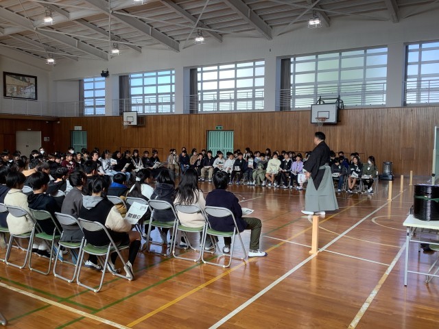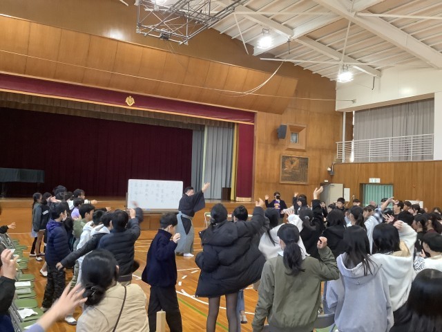 6年生 狂言体験授業 公開日 2025/12/11 更新日 2025/12/11 学校生活のようす 先日、井上松ニ郎様をお呼びして、狂言体験授業を行いました。国語の授業で行った「柿山伏」を中心に狂言のことについて詳しく教えていただきました。迫力のある実演を見て、子どもたちも感心していました。