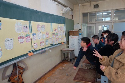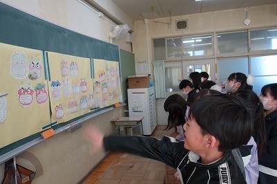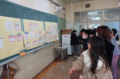 2月は節分ということで、こころの中のオニ退治をしている学級がありました。「めんどくさがりオニ」「寒いの苦手オニ」「宿題あと回しオニ」など、それぞれ退治したいこころの中のオニをめがけて新聞紙で作った豆をまきました。しっかり退治できたようです!
